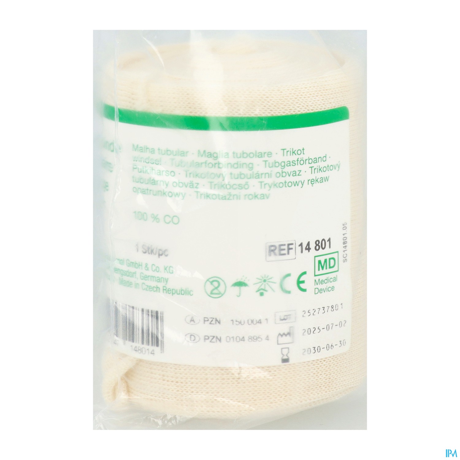 Der Trikotschlauch bzw. die Trikotschlauchbinden bestehen zu 100 % aus rohweißer Baumwolle und sind bei Bedarf bei 121° C sterilisierbar.